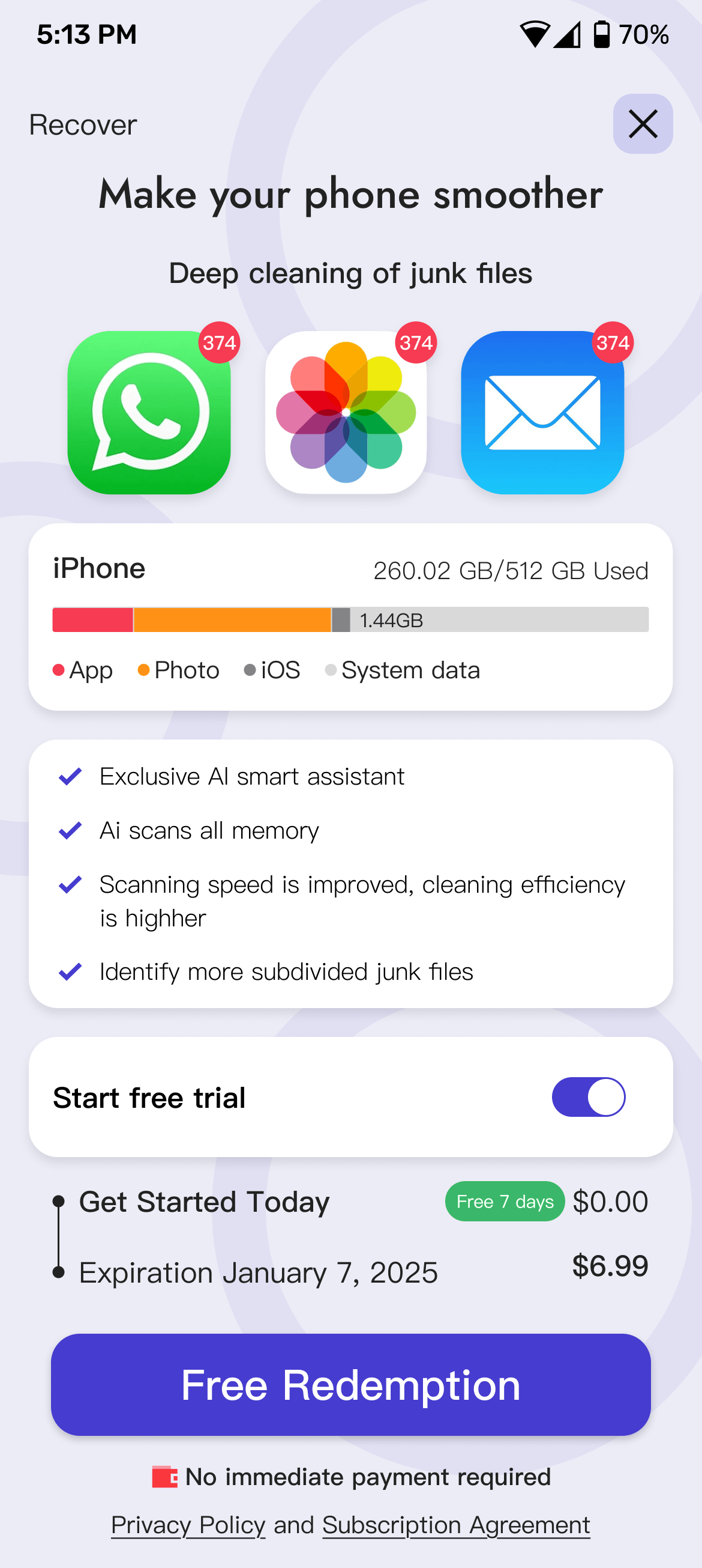 We use Al functions such as chat gpt4.0, Al image analysis, etc. combined with device functions to launch a new Ai Cleanup. By using our Ai Cleanup, users can say goodbye to the troubles caused by insufficient storage space on their mobile phones.